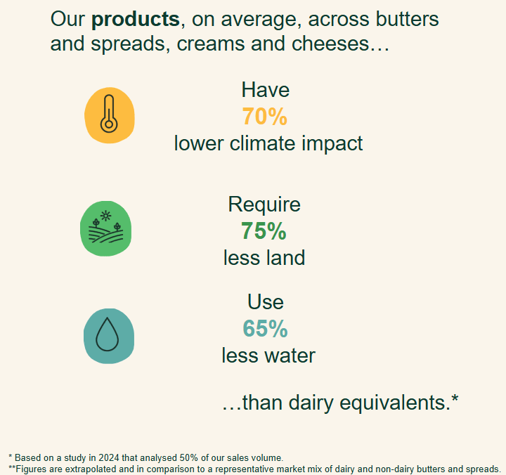 We offer consumers a compelling choice with lower-carbon emissions than dairy equivalents. Using science-based approaches, we measure and demonstrate our impact, ensuring actions align with the latest advancements in sustainability.